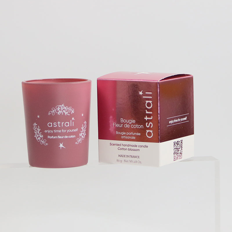 Astrali completa la sua gamma di profumi proponendo una candela profumata al fiore di cotone, pensata per essere offerta alla cliente finale.